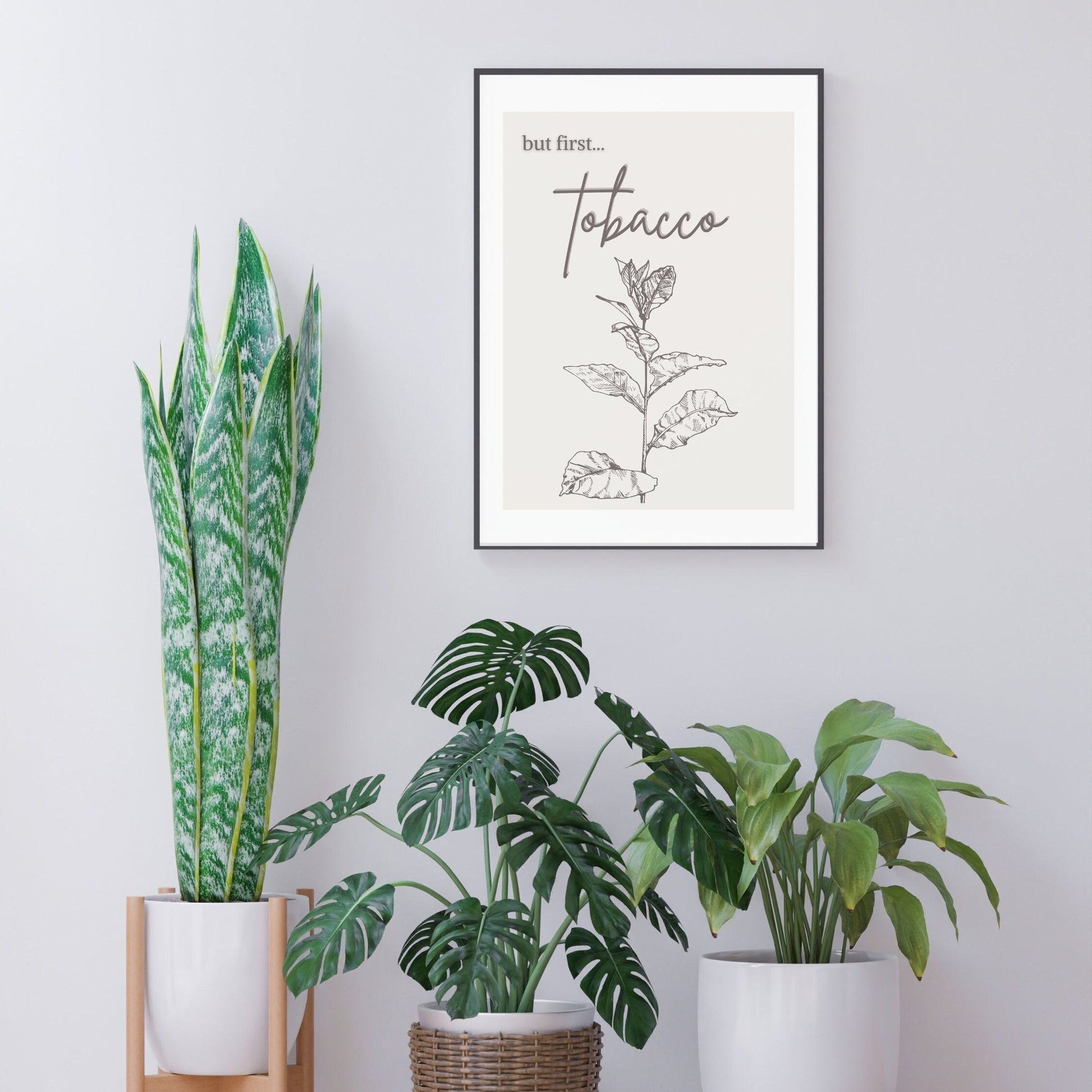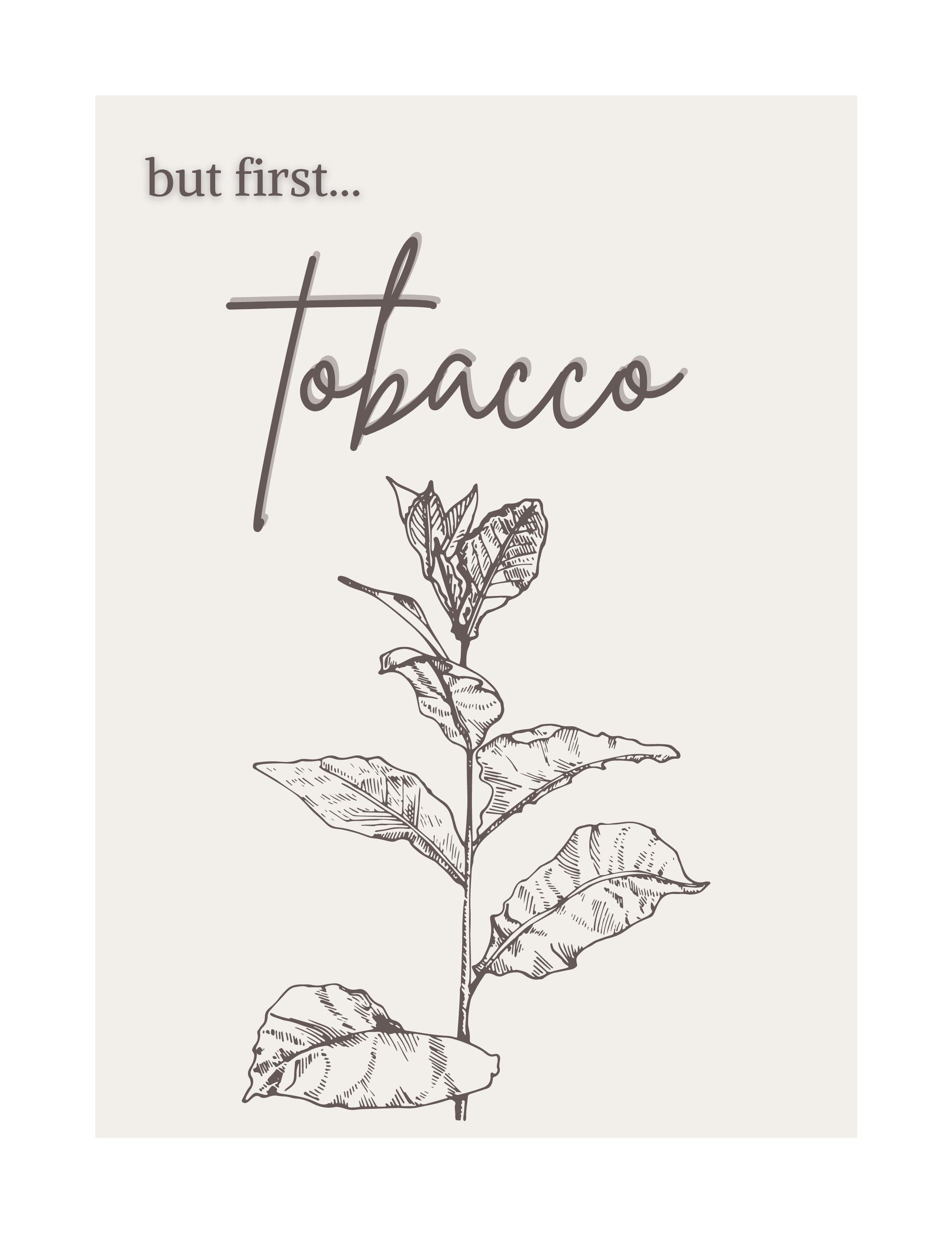 In Indigenous ceremony, tobacco is always the first medicine we offer. This is a sign of respect - we offer tobacco to Creator before we pray, and to our Elders when we ask for guidance. In this neutral art print, we take a tongue-in-cheek approach to the reminder of the importance of tobacco, comparing it to the popular “but first, coffee” slogan. The outlined tobacco plant and handwriting-style font bring together this minimal nature-inspired Indigenous print.