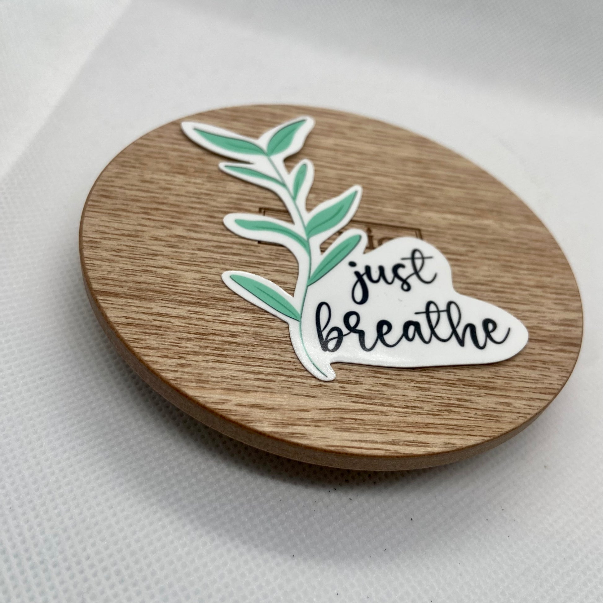 Check out this peaceful reminder with the minimalist Just Breathe vinyl sticker.