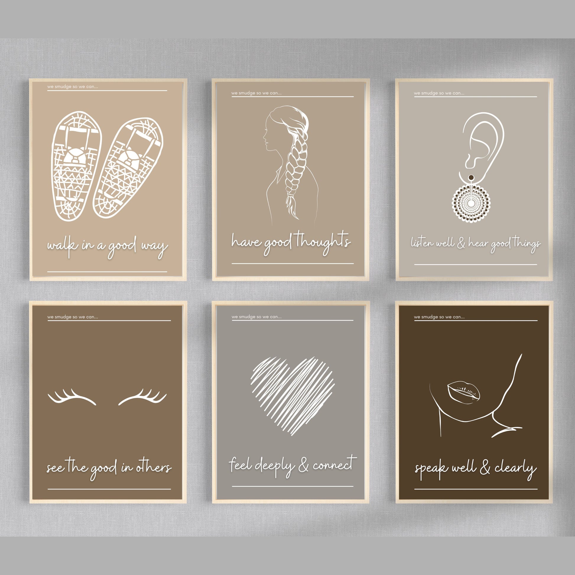 With our Smudging Protocols, find a minimal cohesive set of art prints that illustrate the 6 Steps of Smudging.